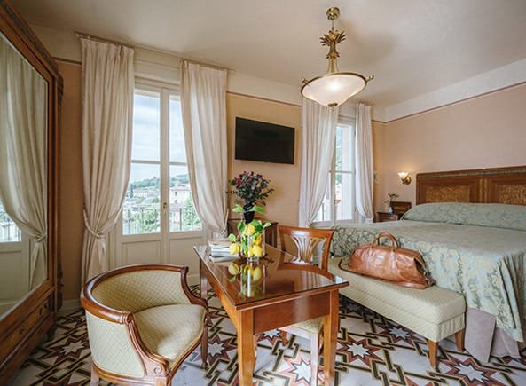 Rilassatevi in una delle nostre eleganti camere, dove il comfort moderno incontra il fascino senza tempo degli arredi originali Belle Époque, conservati con cura dalla nostra famiglia.