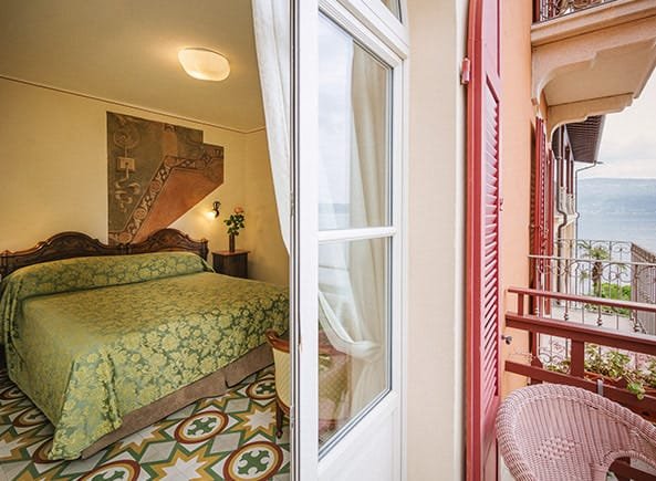 La camera Belvedere offre un balcone incantevole e prospettive particolari sul blu del lago.